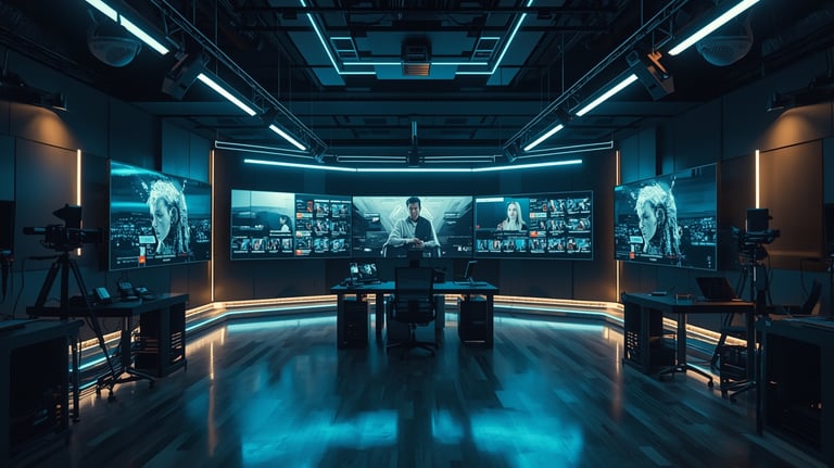 is built using a combination of media automation systems, digital storytelling production workflows, and modern AI creative tools.
